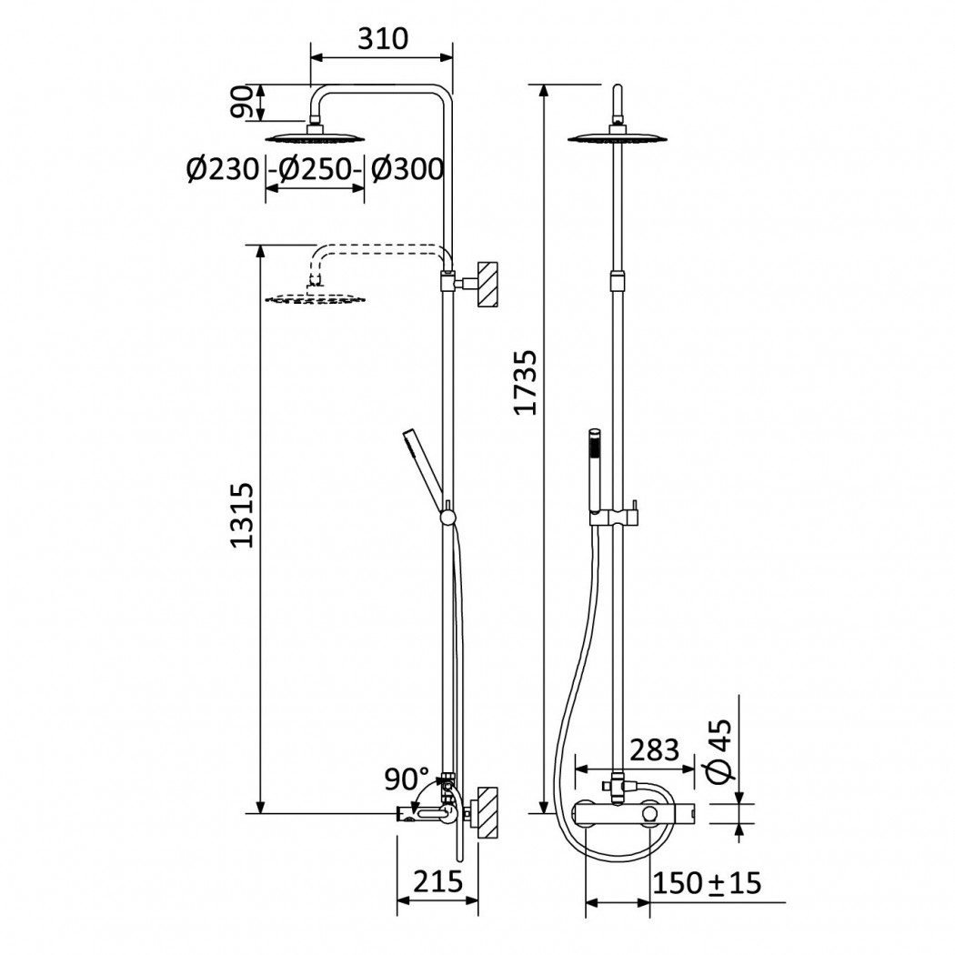 Ручной душ – Elo и душевая лейка Ø300 мм с ограничителем расхода 6 л/мин.