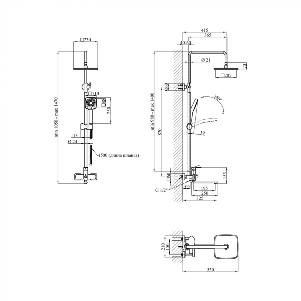 | Висота душової стійки, мм | 980-1400 |