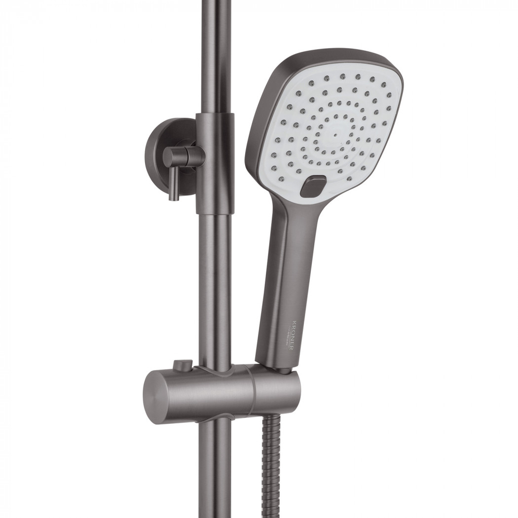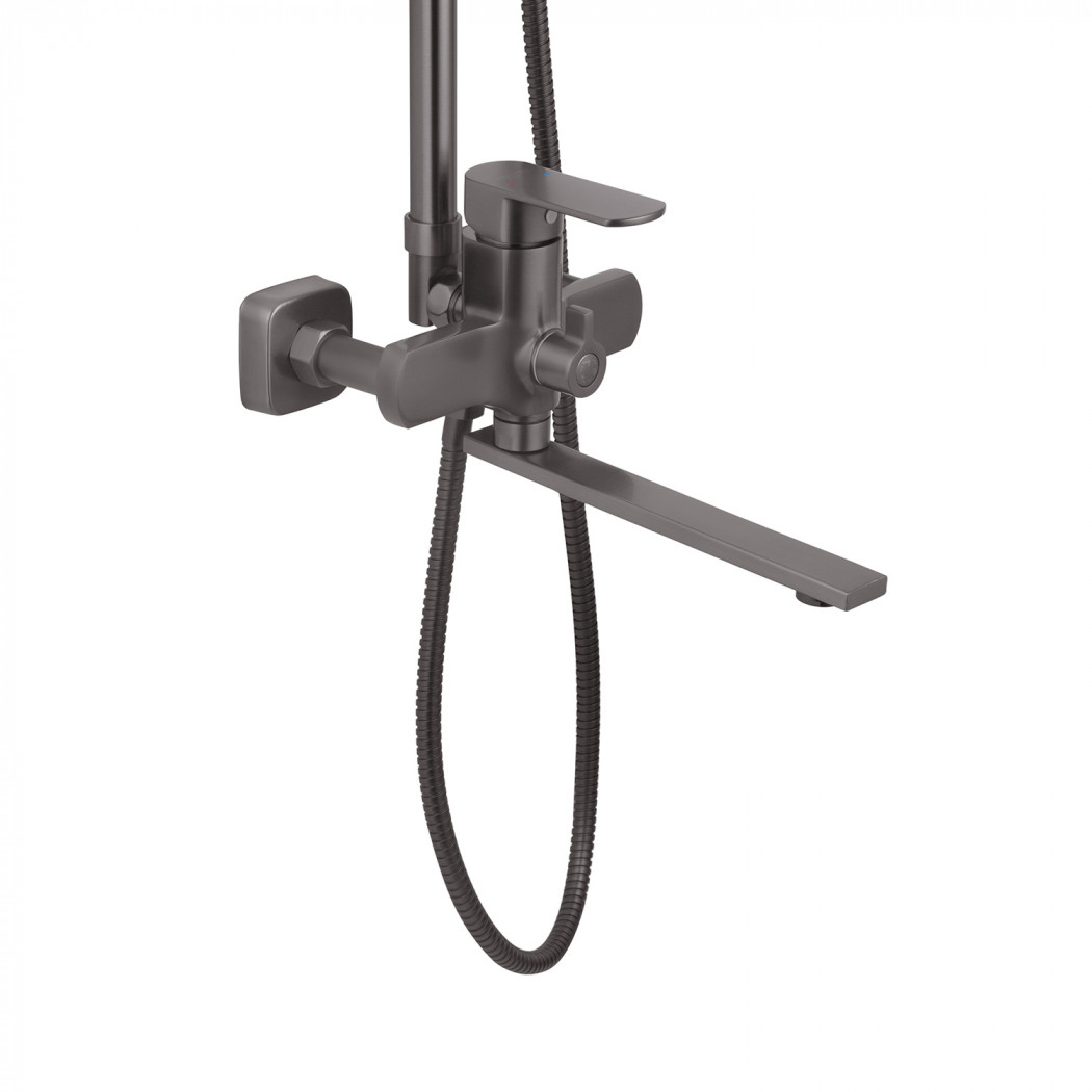| Комплектація | Змішувач, лійка з кронштейном для верхнього душу, лійка з кронштейном для ручного душу, душовий шланг, душова стійка, кріплення, фум стрічка. |