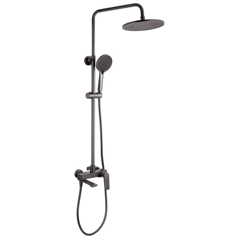 Душова система Kroner KRP Graz GRP063 — це сучасне та надійне рішення для ванної кімнати, яке поєднує функціональність, комфорт і привабливий дизайн. Вона створює затишну атмосферу та забезпечує максимальну зручність під час щоденних водних процедур. Система виконана у стильному графітовому кольорі, що надає інтер’єру ванної кімнати елегантності та стриманої розкоші. Глянцева поверхня підкреслює сучасний вигляд виробу та робить його візуально привабливим. Міцний латунний корпус гарантує довгий термін експлуатації та надійну роботу. Одноважільне керування дозволяє швидко й легко регулювати температуру та напір води, а поворотний вилив допомагає точно спрямовувати потік для максимально комфортного користування. Ручна лійка діаметром 120 мм і верхня лійка 250 мм забезпечують різні варіанти прийняття душу — від освіжаючого до розслаблюючого. Душовий шланг довжиною 1500 мм дарує свободу рухів і зручність у використанні. Окремою перевагою є система захисту від перекручування шланга, яка сприяє плавній роботі та подовжує строк служби виробу. Гарантія 60 місяців підтверджує високу якість і надійність виробу.
