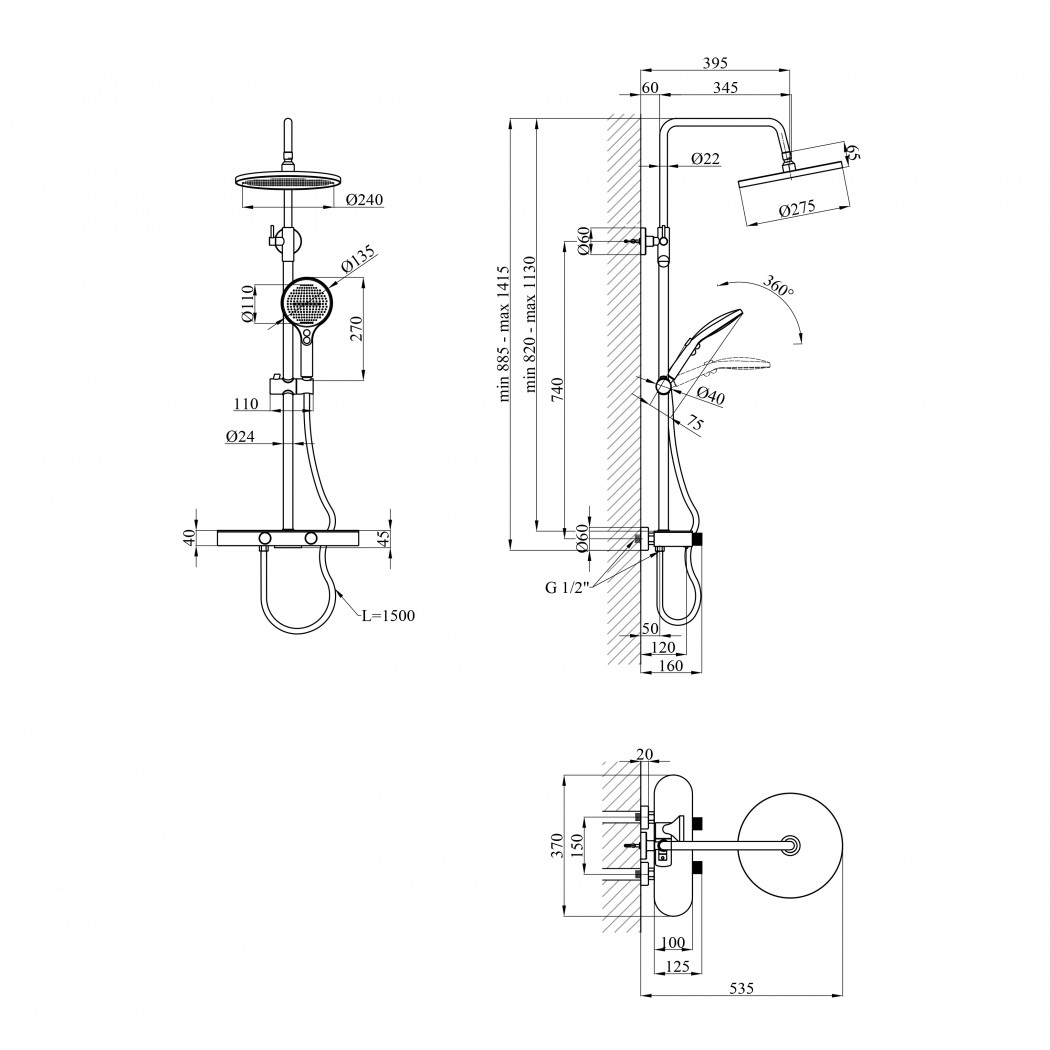 | Висота душової стійки, мм | 820-1130 |