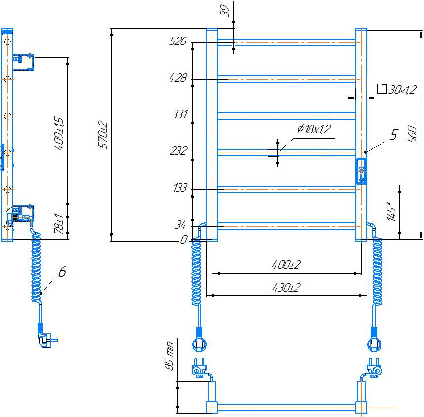Електрична рушникосушарка HF Leeds 570x430. Працює за технологією сухого ТЕНу. Обладнана вбудованим таймер-регулятором і конектором для підключення до живлення з будь-якого боку. Оснащена комплектом для прихованого підключення. Модель має 6 ребер з круглої труби та стійки з квадратного профілю. Матеріал - чорна сталь з антикорозійною обробкою. Варіанти покриття: чорний мат або білий мат. Температурні режими таймер-регулятора: 40°С, 45°С, 50°С. Час роботи: 3, 6 годин або постійний нагрів. Потужність 60 Вт. Гарантія - 3 роки. Купити Електрична рушникосушарка Mario HF Leeds 570x430 чорний мат у магазині Технобум Ви можете за телефоном або оформивши замовлення на сайті.