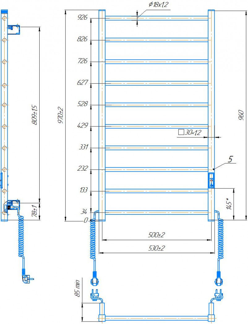 Електрична рушникосушарка Mario HF Leeds 970x530. Працює за технологією сухого ТЕНу. Обладнана вбудованим таймер-регулятором і конектором для підключення до живлення з будь-якого боку. Оснащена комплектом для прихованого підключення. Модель має 10 ребер з круглої труби та стійки з квадратного профілю. Матеріал - чорна сталь з антикорозійною обробкою. Варіанти покриття: чорний мат або білий мат. Температурні режими таймер-регулятора: 40°С, 45°С, 50°С. Час роботи: 3, 6 годин або постійний нагрів. Потужність 130 Вт. Гарантія - 3 роки. Купити Електрична рушникосушарка Mario HF Leeds 970x530 білий мат у магазині Технобум Ви можете за телефоном або оформивши замовлення на сайті.