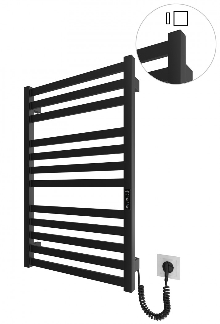 Електрична рушникосушарка Mario HF Oxford 770х530. Працює за технологією сухого ТЕНу. Обладнана вбудованим таймер-регулятором і конектором для підключення до живлення з будь-якого боку. Оснащена комплектом для прихованого підключення. Модель має 12 ребр з прямокутногої труби та стійки з квадратної труби. Матеріал - чорна сталь з антикорозійною обробкою(фосфотація). Варіанти покриття: чорний мат або білий мат. Температурні режими таймер-регулятора: 40°С, 45°С, 50°С. Час роботи: 3, 6 годин або постійний нагрів. Потужність 130 Вт. Гарантія - 3 роки.. Купити Електрична рушникосушарка Mario HF Oxford 770х530 чорний мат у магазині Технобум Ви можете за телефоном або оформивши замовлення на сайті.