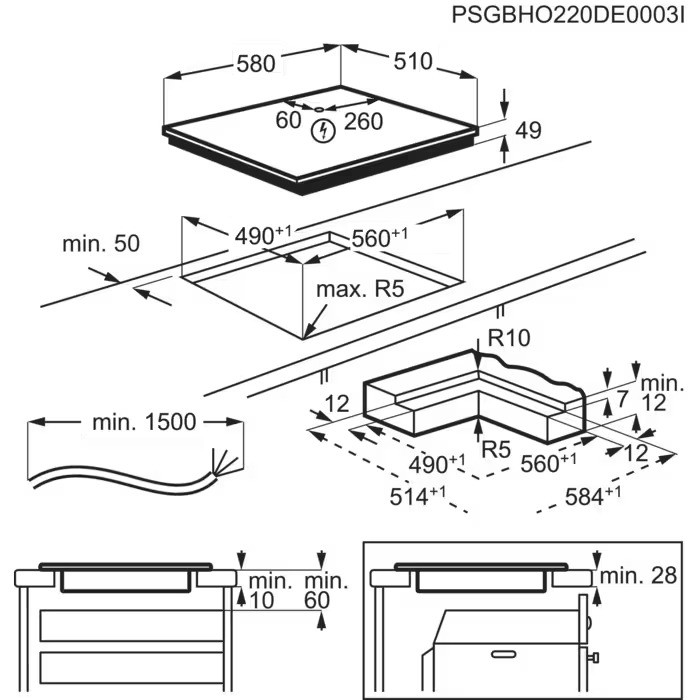 | Права передня зона | Індукційна, 1400/2500W/145mm |