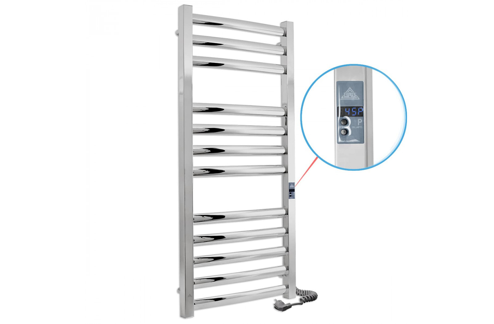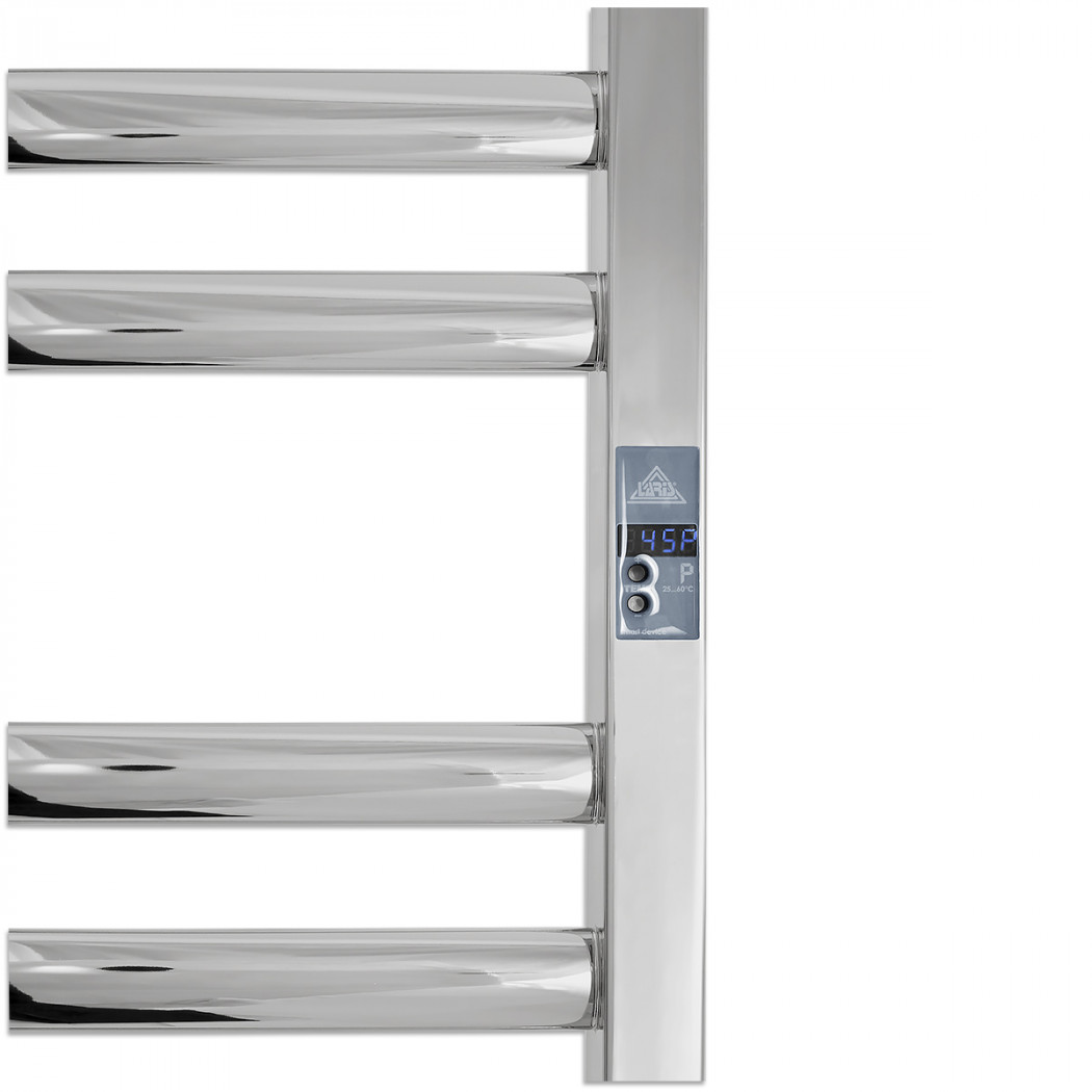Управляет нагревом электрополотенцесушителя микропроцессорный термоконтроллер (кнопочное управление). Для начала работы необходимо задать температуру полотенцесушителя (можно по часовой программе с суточным либо недельным циклом). Термодатчик контролирует температуру поверхности полотенцесушителя, что исключает его перегрев.