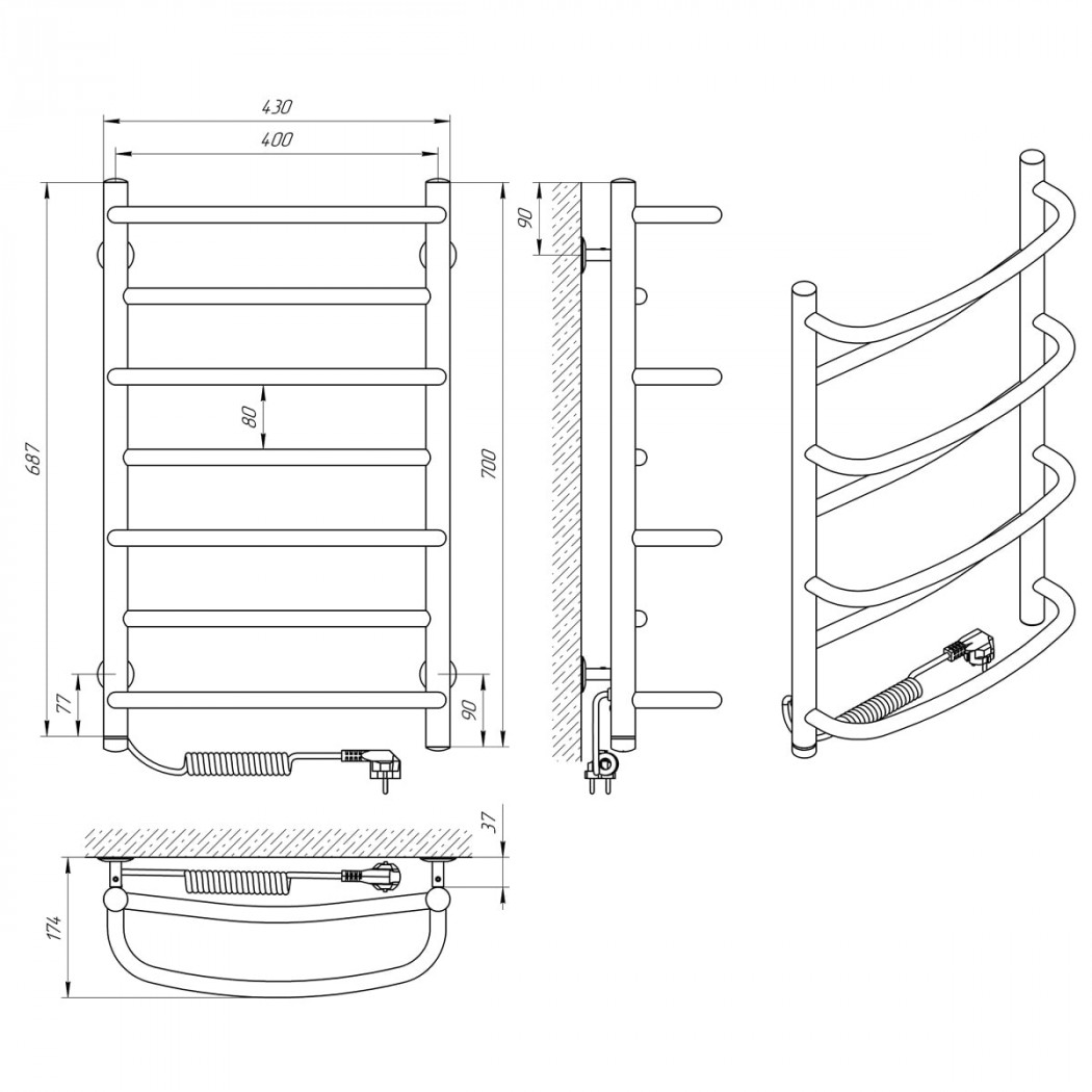 | Размеры, мм | 700 × 430 × 174 |