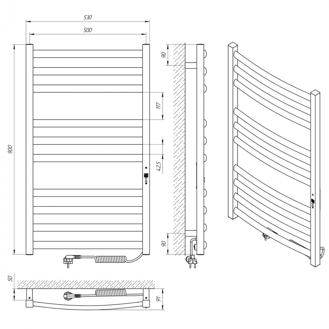 | Размеры (В×Ш×Г) | 900 × 530 × 91 мм |