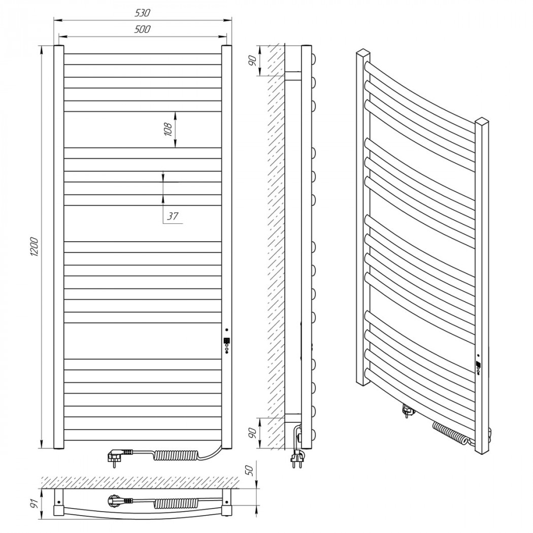 | Размеры (В×Ш×Г) | 1200 × 530 × 91 мм |