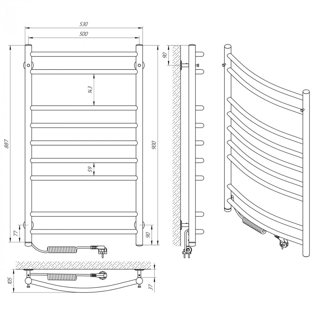 | Размеры, мм | 900 × 530 × 105 |