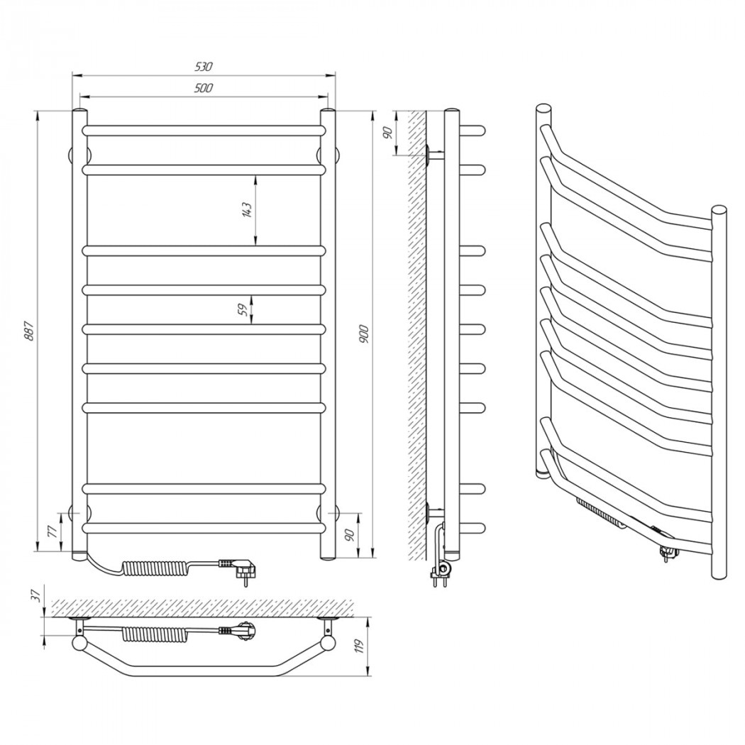 | Размеры, мм | 900 × 530 × 119 |