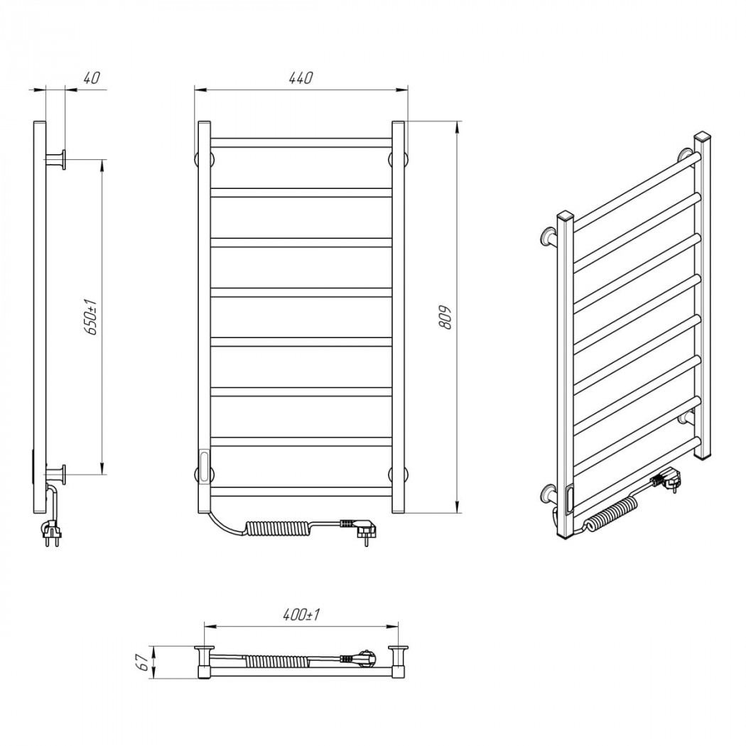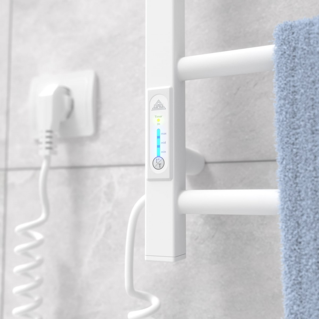 Особенности: управляет нагревом электрополотенцесушителя микропроцессорный термоконтроллер (кнопочное управление). Для начала работы необходимо задать температуру полотенцесушителя. Термодатчик контролирует температуру поверхности полотенцесушителя, что исключает его перегрев. Среди преимуществ регулятора - хранения избранного режима работы (при отключении работа восстановиться в запрограммированном пользователем режиме), наличие таймера отключения (3h) и цветовой индикации работы!