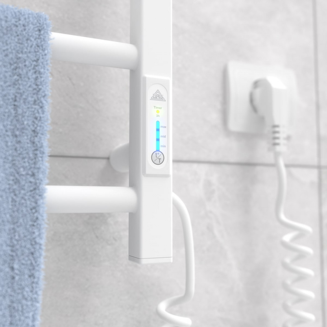 Особенности: управляет нагревом электрополотенцесушителя микропроцессорный термоконтроллер (кнопочное управление). Для начала работы необходимо задать температуру полотенцесушителя. Термодатчик контролирует температуру поверхности полотенцесушителя, что исключает его перегрев. Среди преимуществ регулятора - хранения избранного режима работы (при отключении работа восстановиться в запрограммированном пользователем режиме), наличие таймера отключения (3h) и цветовой индикации работы!