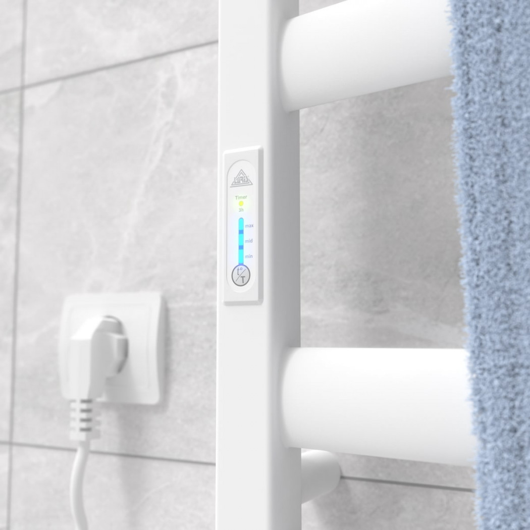 Особенности: управляет нагревом электрополотенцесушителя микропроцессорный термоконтроллер (кнопочное управление). Для начала работы необходимо задать температуру полотенцесушителя. Термодатчик контролирует температуру поверхности полотенцесушителя, что исключает его перегрев. Среди преимуществ регулятора - хранения избранного режима работы (при отключении работа восстановиться в запрограммированном пользователем режиме), наличие таймера отключения (3h) и цветовой индикации работы!