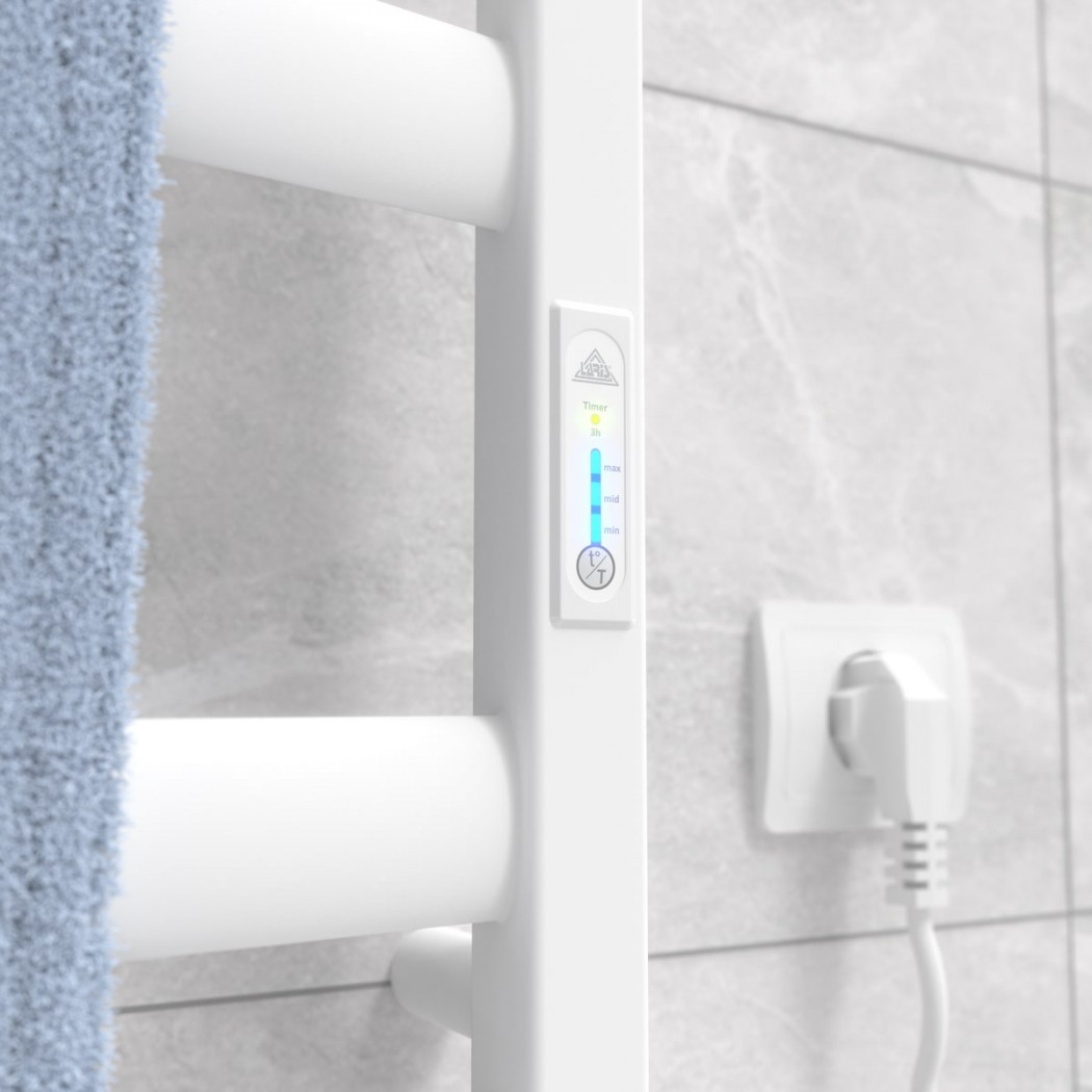 Особенности: управляет нагревом электрополотенцесушителя микропроцессорный термоконтроллер (кнопочное управление). Для начала работы необходимо задать температуру полотенцесушителя. Термодатчик контролирует температуру поверхности полотенцесушителя, что исключает его перегрев. Среди преимуществ регулятора - хранения избранного режима работы (при отключении работа восстановиться в запрограммированном пользователем режиме), наличие таймера отключения (3h) и цветовой индикации работы!