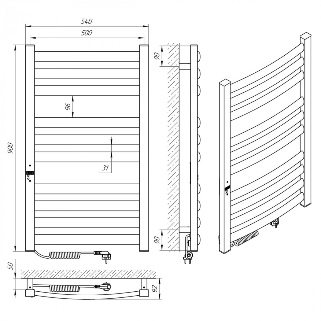 Особенности: управляет нагревом электрополотенцесушителя микропроцессорный термоконтроллер (кнопочное управление). Для начала работы необходимо задать температуру полотенцесушителя (можно по часовой программе с суточным либо недельным циклом). Термодатчик контролирует температуру поверхности полотенцесушителя, что исключает его перегрев.
