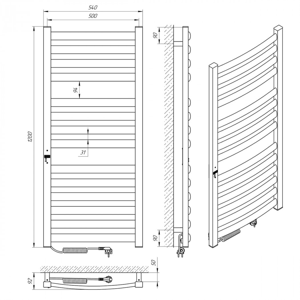 | Размеры (В×Ш×Г) | 1200 × 540 × 92 мм |