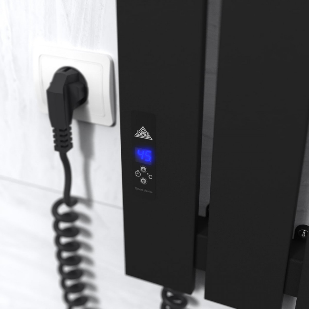 Особенности: управляет нагревом электрополотенцесушителя микропроцессорный термоконтроллер (кнопочное управление). Для начала работы необходимо задать температуру полотенцесушителя в градусах. Термодатчик контролирует температуру поверхности полотенцесушителя, что исключает его перегрев. Среди преимуществ регулятора - автоматическое снижение мощности (ЭКО-режим), наличие таймера отключения (1-12h) и блокировка кнокпок (защита от детей)!