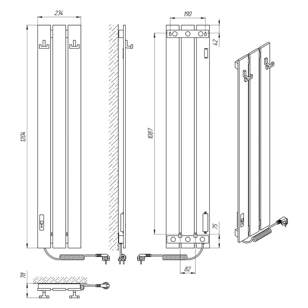 | Размеры, мм | 1204 × 234 × 78 |