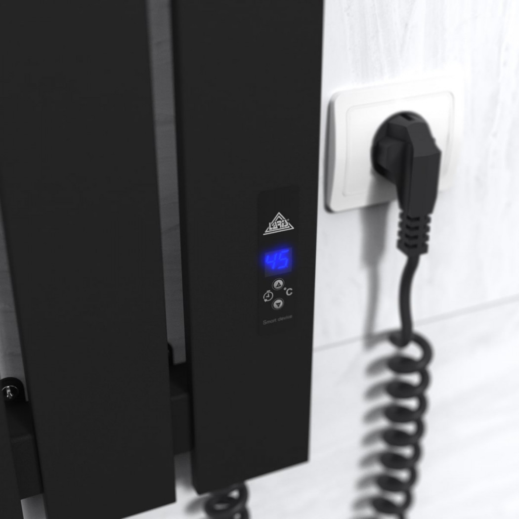 Особенности: управляет нагревом электрополотенцесушителя микропроцессорный термоконтроллер (кнопочное управление). Для начала работы необходимо задать температуру полотенцесушителя в градусах. Термодатчик контролирует температуру поверхности полотенцесушителя, что исключает его перегрев. Среди преимуществ регулятора - автоматическое снижение мощности (ЭКО-режим), наличие таймера отключения (1-12h) и блокировка кнокпок (защита от детей)!