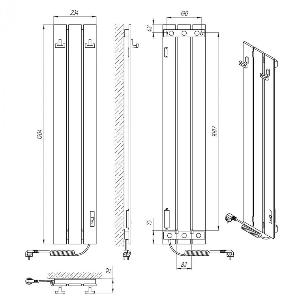 | Размеры, мм | 1204 × 234 × 78 |