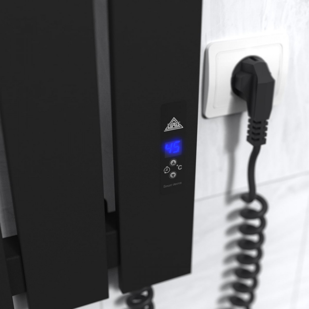 Особенности: управляет нагревом электрополотенцесушителя микропроцессорный термоконтроллер (кнопочное управление). Для начала работы необходимо задать температуру полотенцесушителя в градусах. Термодатчик контролирует температуру поверхности полотенцесушителя, что исключает его перегрев. Среди преимуществ регулятора - автоматическое снижение мощности (ЭКО-режим), наличие таймера отключения (1-12h) и блокировка кнокпок (защита от детей)!