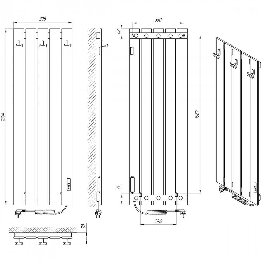 | Размеры, мм | 1204 × 398 × 78 |