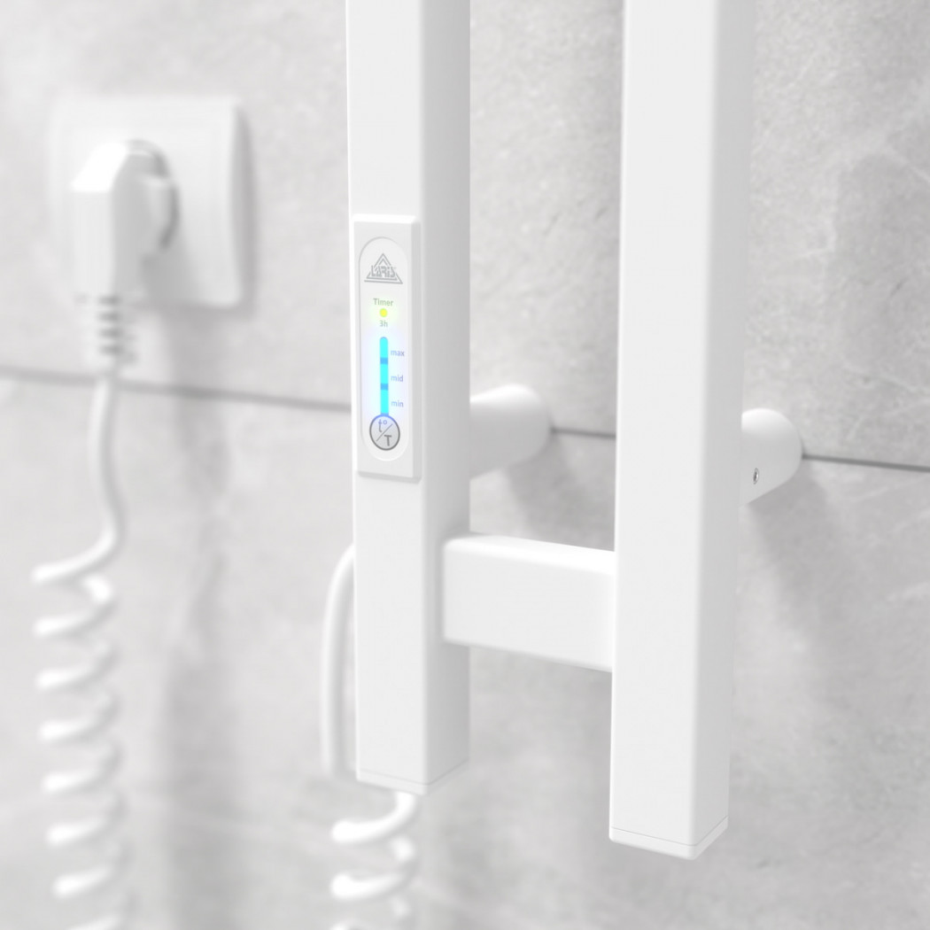 Особенности: управляет нагревом электрополотенцесушителя микропроцессорный термоконтроллер (кнопочное управление). Для начала работы необходимо задать температуру полотенцесушителя. Термодатчик контролирует температуру поверхности полотенцесушителя, что исключает его перегрев. Среди преимуществ регулятора - хранения избранного режима работы (при отключении работа восстановиться в запрограммированном пользователем режиме), наличие таймера отключения (3h) и цветовой индикации работы!