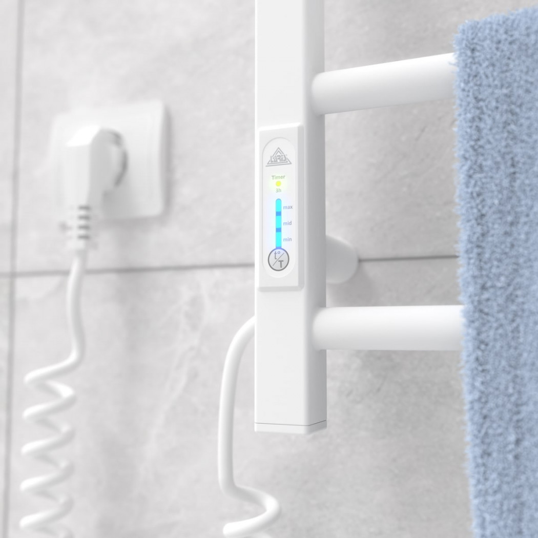 Особенности: управляет нагревом электрополотенцесушителя микропроцессорный термоконтроллер (кнопочное управление). Для начала работы необходимо задать температуру полотенцесушителя. Термодатчик контролирует температуру поверхности полотенцесушителя, что исключает его перегрев. Среди преимуществ регулятора - хранения избранного режима работы (при отключении работа восстановиться в запрограммированном пользователем режиме), наличие таймера отключения (3h) и цветовой индикации работы!