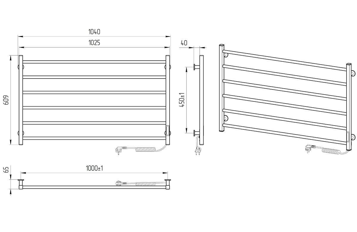 | Размеры, мм | 609 × 1040 × 65 |