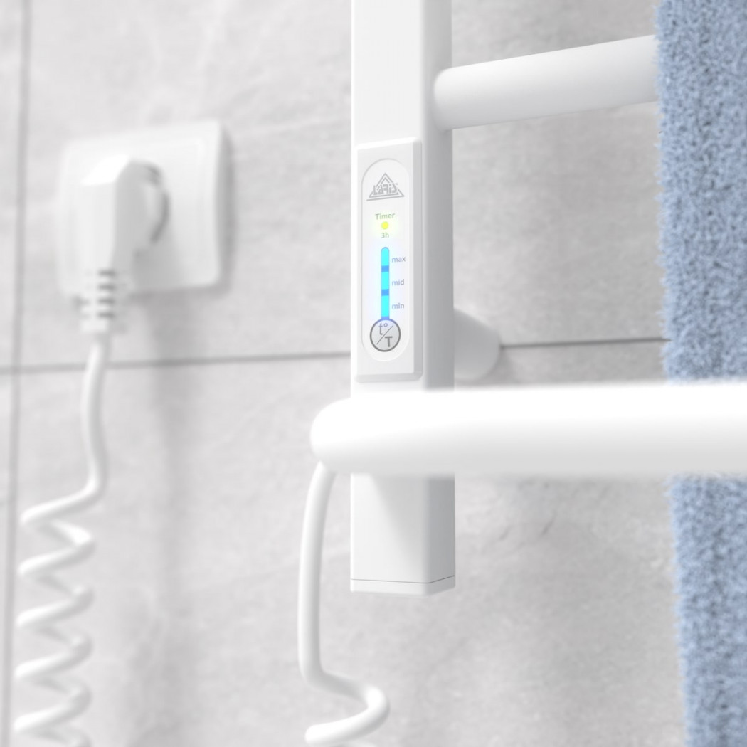 Особенности: управляет нагревом электрополотенцесушителя микропроцессорный термоконтроллер (кнопочное управление). Для начала работы необходимо задать температуру полотенцесушителя. Термодатчик контролирует температуру поверхности полотенцесушителя, что исключает его перегрев. Среди преимуществ регулятора - хранения избранного режима работы (при отключении работа восстановиться в запрограммированном пользователем режиме), наличие таймера отключения (3h) и цветовой индикации работы!