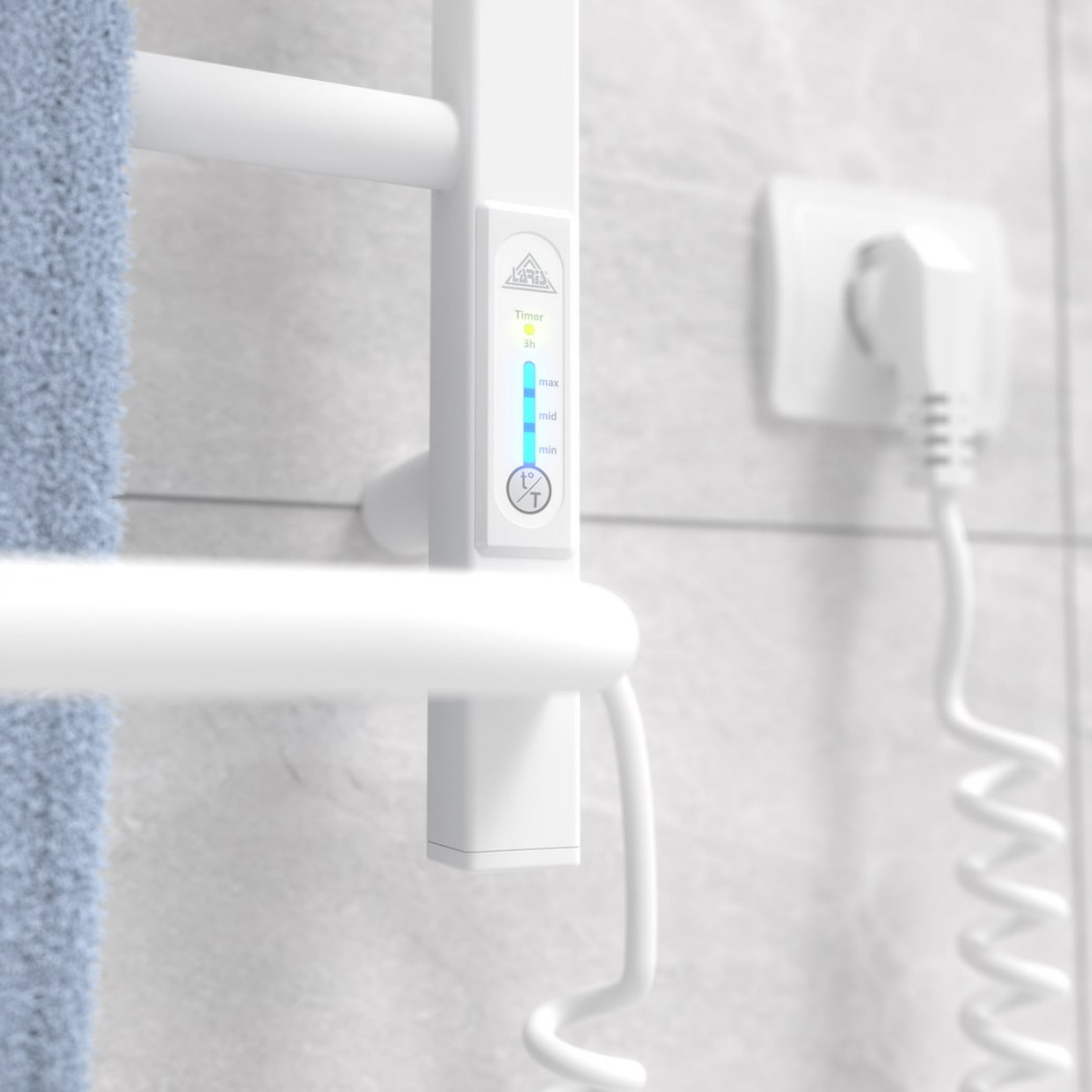 Особенности: управляет нагревом электрополотенцесушителя микропроцессорный термоконтроллер (кнопочное управление). Для начала работы необходимо задать температуру полотенцесушителя. Термодатчик контролирует температуру поверхности полотенцесушителя, что исключает его перегрев. Среди преимуществ регулятора - хранения избранного режима работы (при отключении работа восстановиться в запрограммированном пользователем режиме), наличие таймера отключения (3h) и цветовой индикации работы!