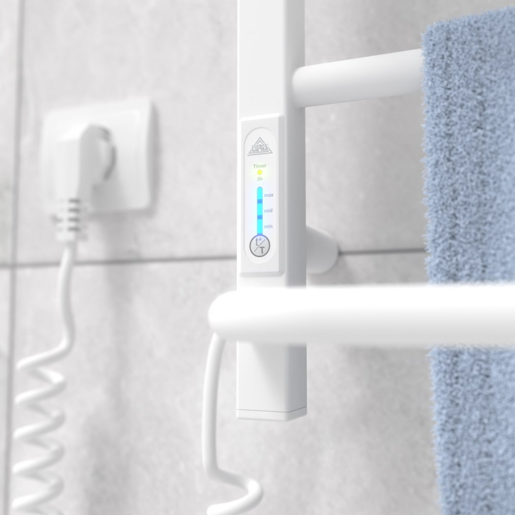 Особенности: управляет нагревом электрополотенцесушителя микропроцессорный термоконтроллер (кнопочное управление). Для начала работы необходимо задать температуру полотенцесушителя. Термодатчик контролирует температуру поверхности полотенцесушителя, что исключает его перегрев. Среди преимуществ регулятора - хранения избранного режима работы (при отключении работа восстановиться в запрограммированном пользователем режиме), наличие таймера отключения (3h) и цветовой индикации работы!