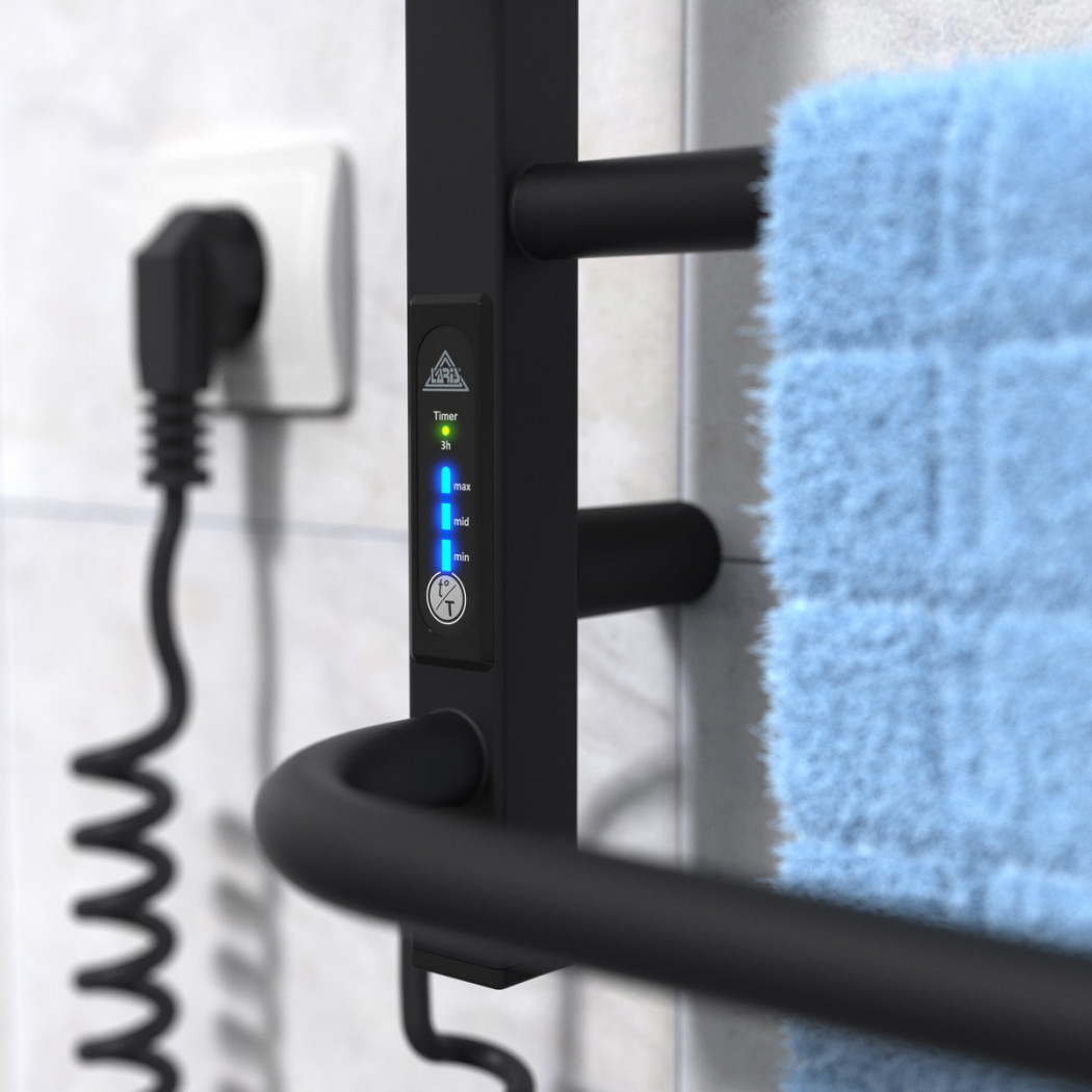 Особенности: управляет нагревом электрополотенцесушителя микропроцессорный термоконтроллер (кнопочное управление). Для начала работы необходимо задать температуру полотенцесушителя. Термодатчик контролирует температуру поверхности полотенцесушителя, что исключает его перегрев. Среди преимуществ регулятора - хранения избранного режима работы (при отключении работа восстановиться в запрограммированном пользователем режиме), наличие таймера отключения (3h) и цветовой индикации работы!