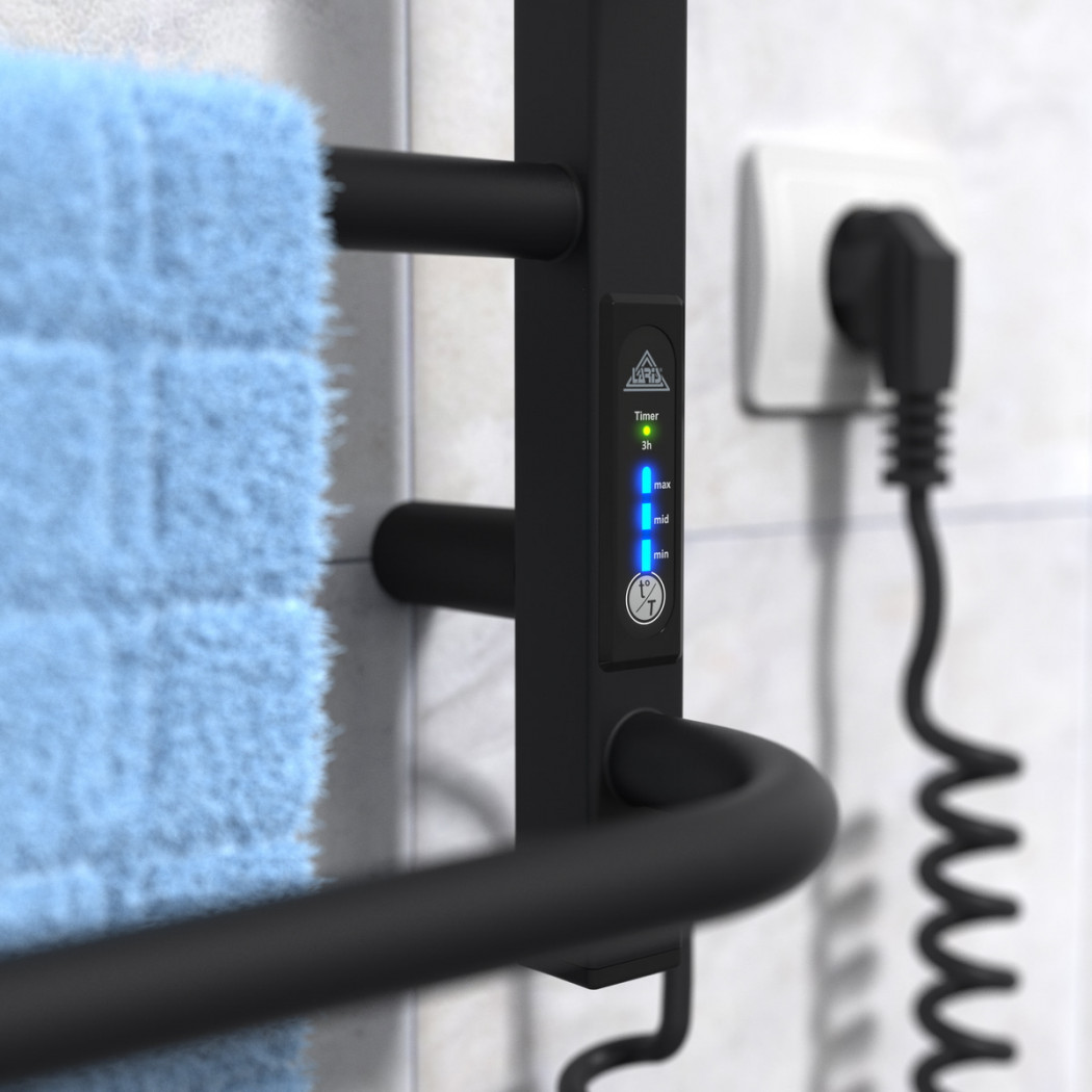 Особенности: управляет нагревом электрополотенцесушителя микропроцессорный термоконтроллер (кнопочное управление). Для начала работы необходимо задать температуру полотенцесушителя. Термодатчик контролирует температуру поверхности полотенцесушителя, что исключает его перегрев. Среди преимуществ регулятора - хранения избранного режима работы (при отключении работа восстановиться в запрограммированном пользователем режиме), наличие таймера отключения (3h) и цветовой индикации работы!