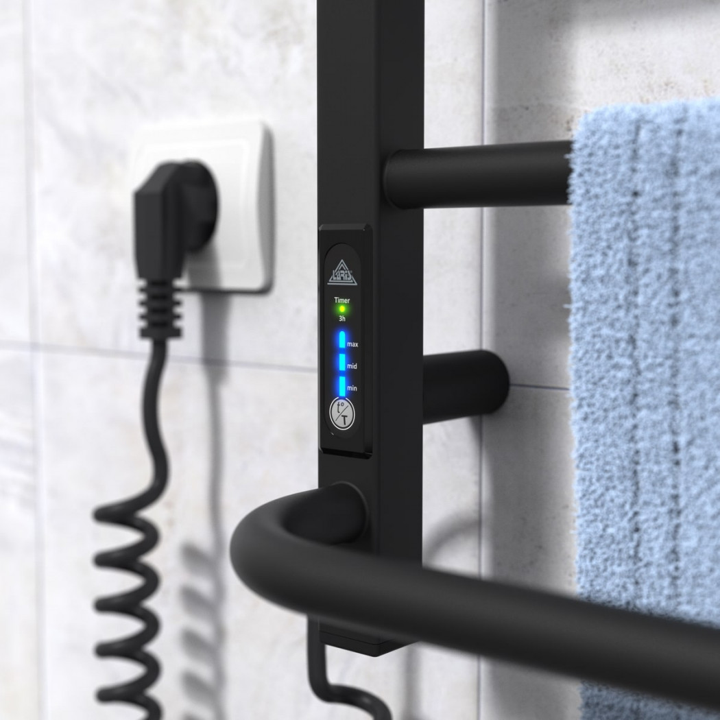 Особенности: управляет нагревом электрополотенцесушителя микропроцессорный термоконтроллер (кнопочное управление). Для начала работы необходимо задать температуру полотенцесушителя. Термодатчик контролирует температуру поверхности полотенцесушителя, что исключает его перегрев. Среди преимуществ регулятора - хранения избранного режима работы (при отключении работа восстановиться в запрограммированном пользователем режиме), наличие таймера отключения (3h) и цветовой индикации работы!