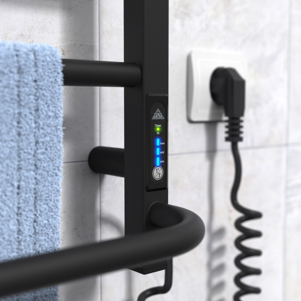 Особенности: управляет нагревом электрополотенцесушителя микропроцессорный термоконтроллер (кнопочное управление). Для начала работы необходимо задать температуру полотенцесушителя. Термодатчик контролирует температуру поверхности полотенцесушителя, что исключает его перегрев. Среди преимуществ регулятора - хранения избранного режима работы (при отключении работа восстановиться в запрограммированном пользователем режиме), наличие таймера отключения (3h) и цветовой индикации работы!