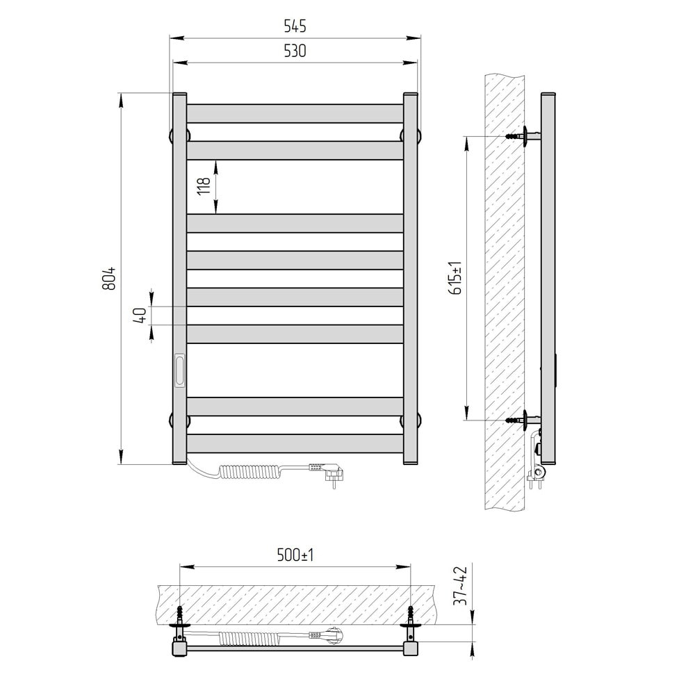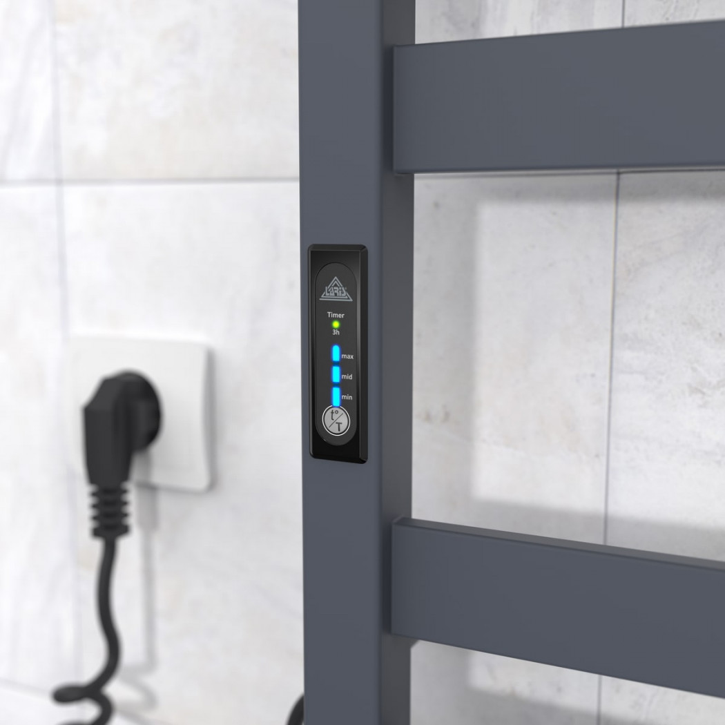 Особенности: управляет нагревом электрополотенцесушителя микропроцессорный термоконтроллер (кнопочное управление). Для начала работы необходимо задать температуру полотенцесушителя. Термодатчик контролирует температуру поверхности полотенцесушителя, что исключает его перегрев. Среди преимуществ регулятора - хранения избранного режима работы (при отключении работа восстановиться в запрограммированном пользователем режиме), наличие таймера отключения (3h) и цветовой индикации работы!