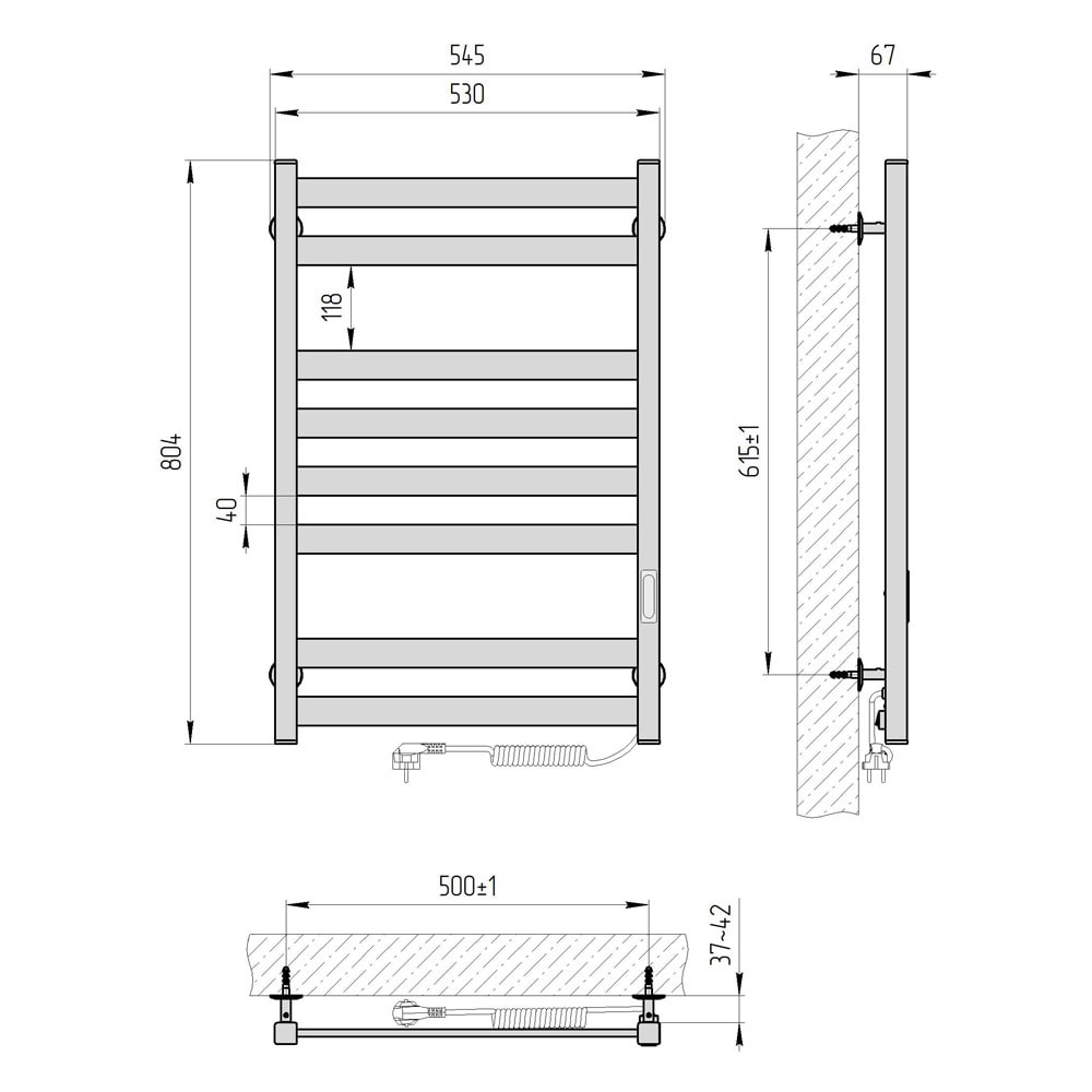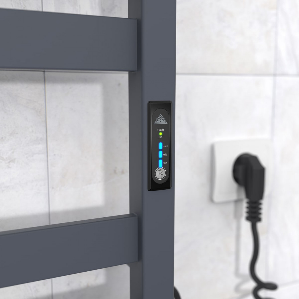 Особенности: управляет нагревом электрополотенцесушителя микропроцессорный термоконтроллер (кнопочное управление). Для начала работы необходимо задать температуру полотенцесушителя. Термодатчик контролирует температуру поверхности полотенцесушителя, что исключает его перегрев. Среди преимуществ регулятора - хранения избранного режима работы (при отключении работа восстановиться в запрограммированном пользователем режиме), наличие таймера отключения (3h) и цветовой индикации работы!