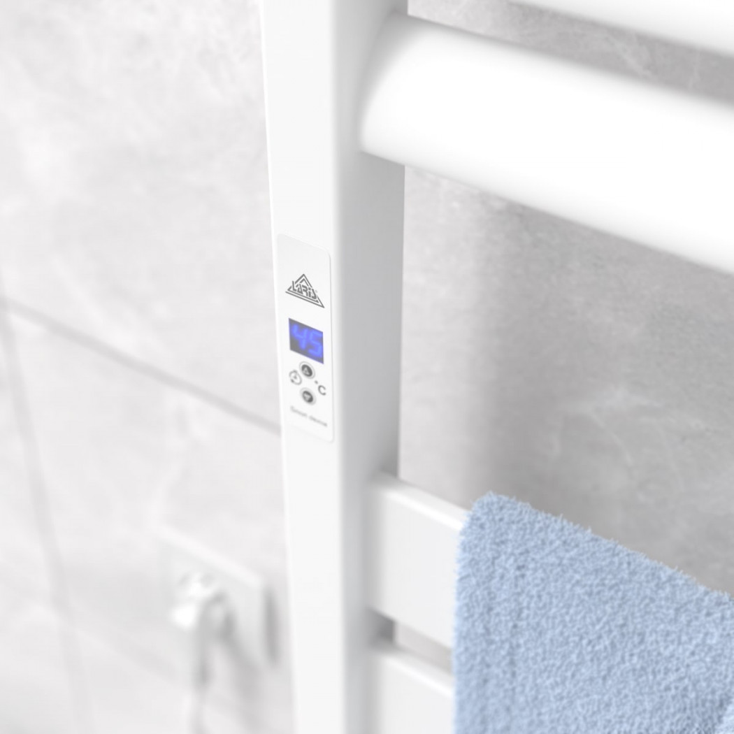 Особенности: управляет нагревом электрополотенцесушителя микропроцессорный термоконтроллер. Для начала работы необходимо задать температуру полотенцесушителя. Дополнительно можно включать/выключать нагрев, программно снижать мощность до 50%. Термостат контролирует температуру поверхности полотенцесушителя, что исключает его перегрев. Выдерживает напряжение 1500 В переменного тока/минуту. Есть удобная функция блокировки кнопок от детей.