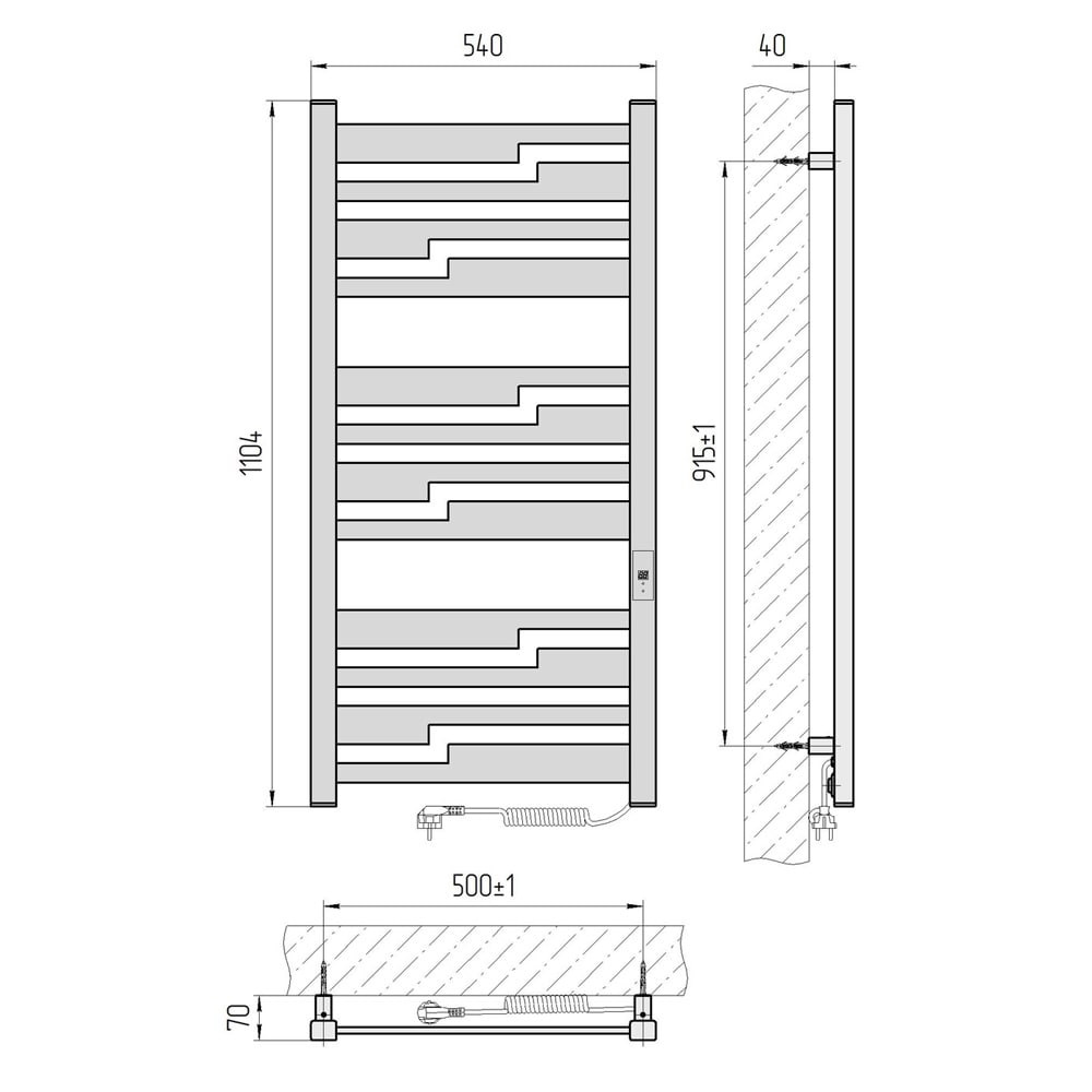 Особенности: управляет нагревом электрополотенцесушителя микропроцессорный термоконтроллер. Для начала работы необходимо задать температуру полотенцесушителя. Дополнительно можно включать/выключать нагрев, программно снижать мощность до 50%. Термостат контролирует температуру поверхности полотенцесушителя, что исключает его перегрев. Выдерживает напряжение 1500 В переменного тока/минуту. Есть удобная функция блокировки кнопок от детей. Присуттвует возможность программированого отключения полотенцесушителя - таймер от 1 до 12 часов.