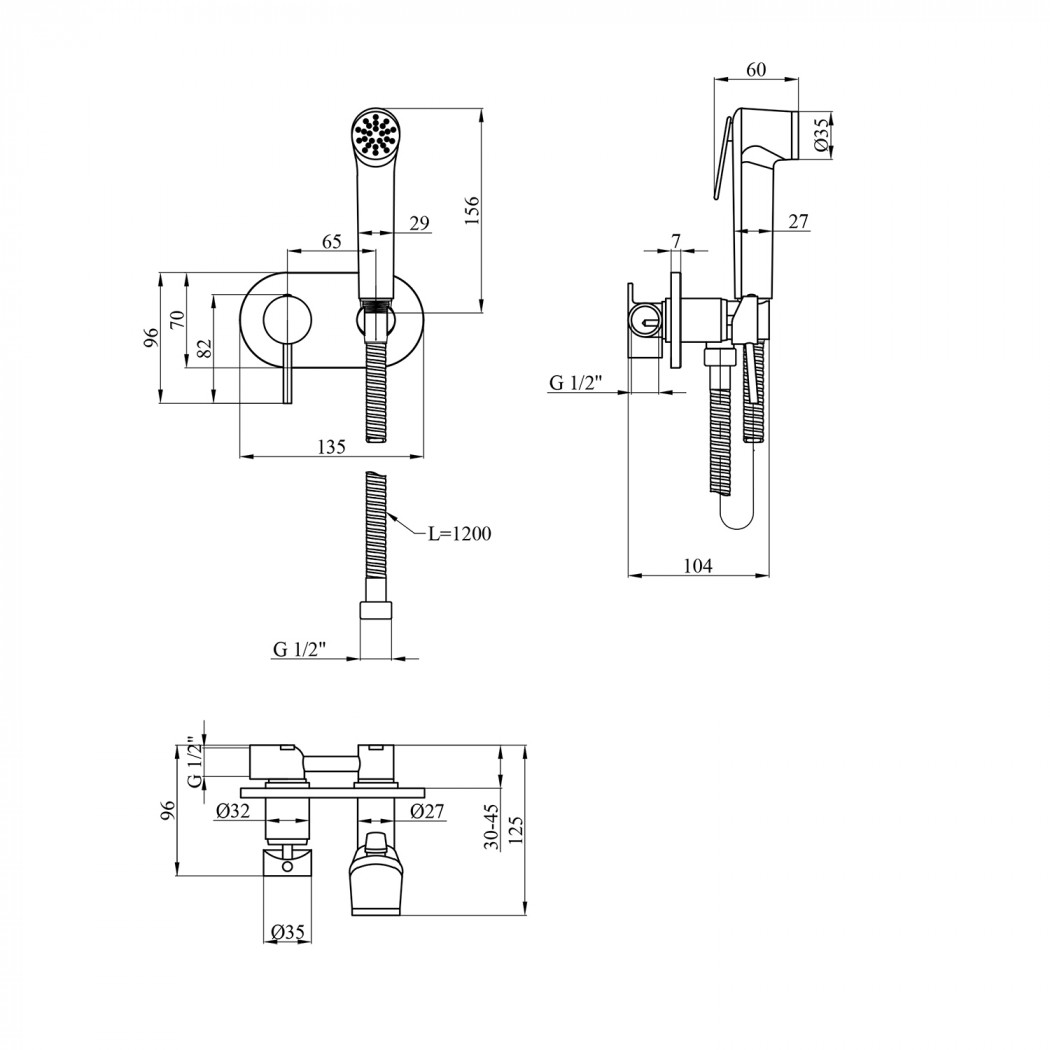 | Довжина душового шлангу, мм | 1200 |