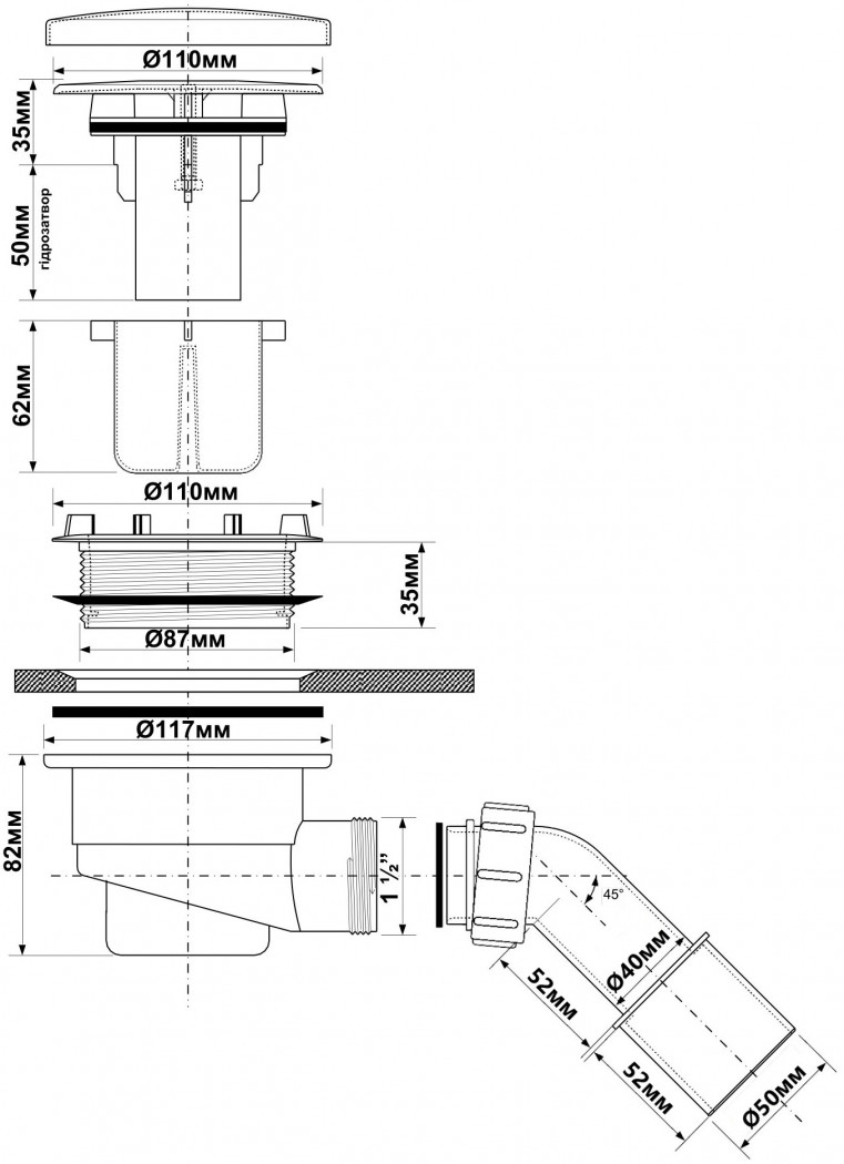 • компактная высота 82 мм — подходит для поддонов с низкой установкой;