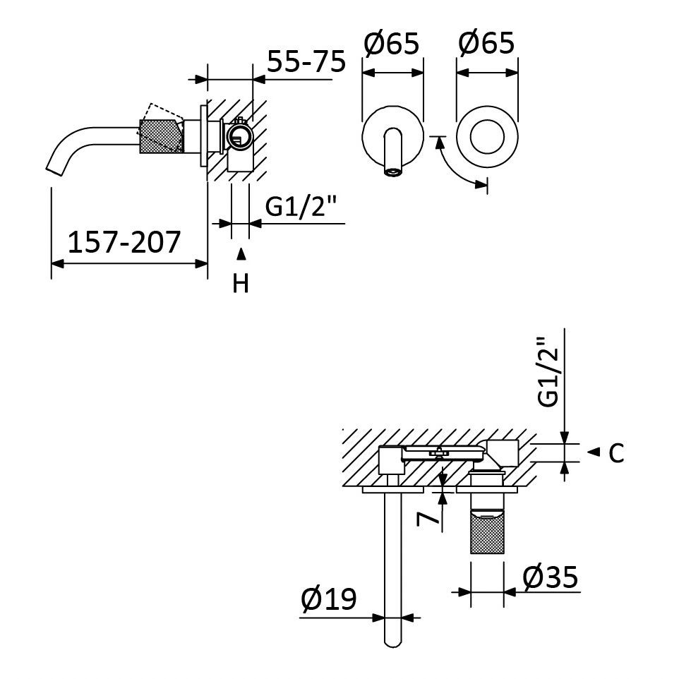 Смеситель для раковины на 2 отверстия настенный длина излива 200 мм Bruma Leaf 167 012 3CR Cromado