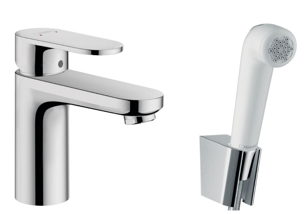 Купить Смеситель для умывальника Hansgrohe Vernis Blend 100V с гигиенической лейкой хром 71215000, хэнсгрое, хенсгроэ, блэнд, хансгрохе бленд, рфтыпкщру