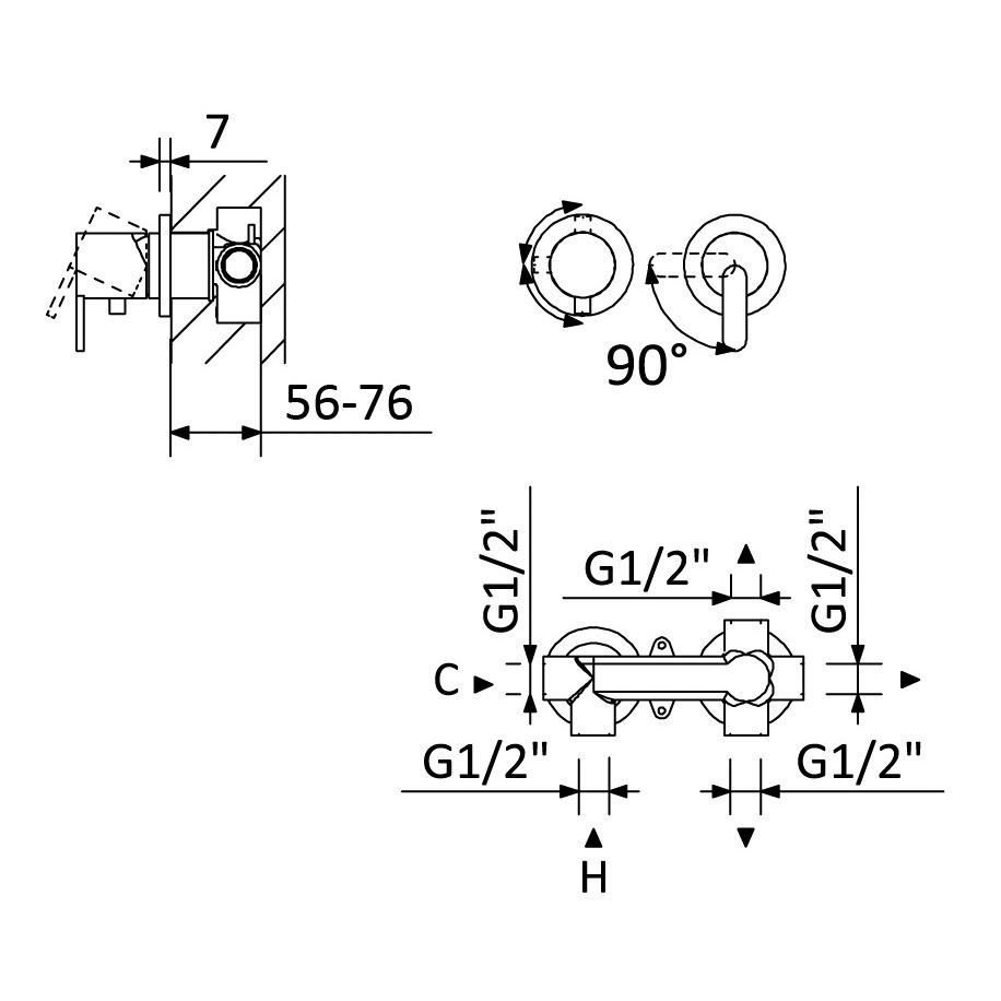 Смеситель скрытого монтажа на 2 отверстия Bruma Leaf 167 312 3CR Cromado на 3 потребителя