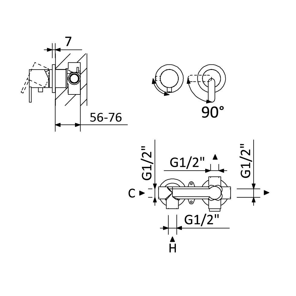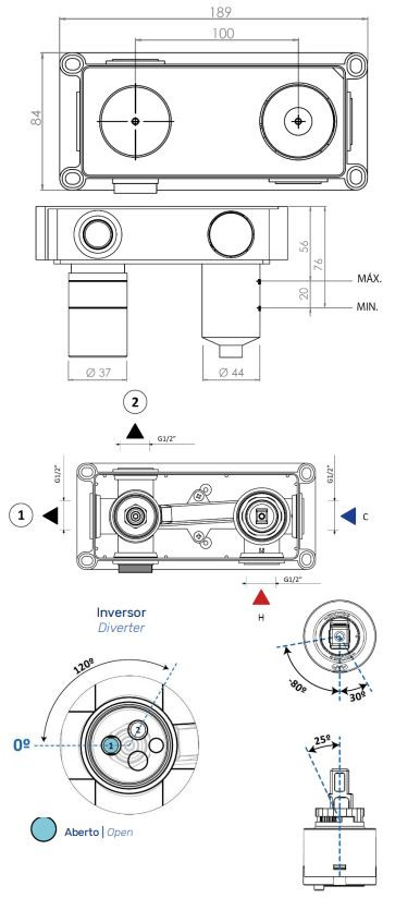 Купить Смеситель скрытого монтажа на 2 отверстия с 2 выходами Bruma Leaf 167 311 9CR Cromado, брума, икгьф, сантехника португалия, португальские смесители купить в Харькове и по Украине, смесители разных цветов, придбати якісний змішувач