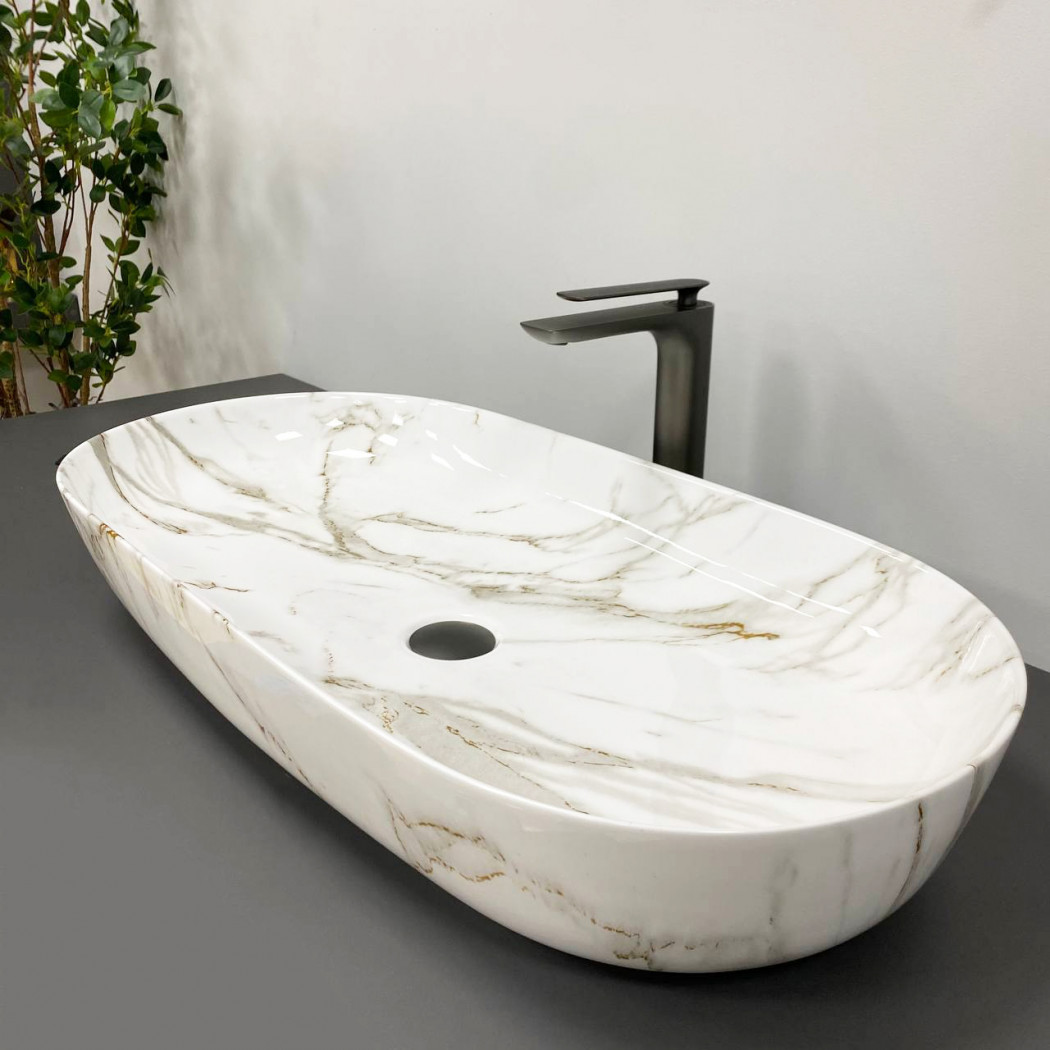 Накладные раковины серии VBI ANDRIA пользуются высоким спросом и доступны в разных размерах и цветах в глянцевом исполнении. Раковина имеет идеальные пропорции, овальную форму и не высокие стенки, придающие утонченность. Универсальный дизайн позволяет подобрать смеситель в любом стиле. Модель VBI ANDRIA – это классика поединенная с современностью, выполненная с уникальным узором, имитирующим мрамор.