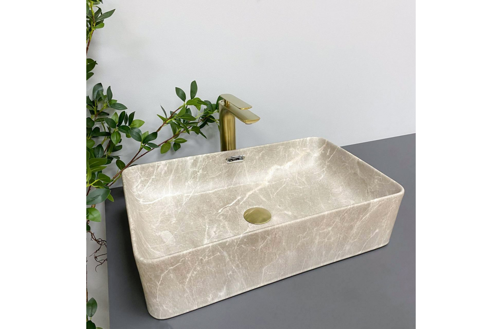 Накладные раковины серии VBI ARABBA пользуются высоким спросом и доступны в разных цветах в матовом исполнении. Раковина имеет прямоугольную форму, которая внутри смягчается изгибами, что значительно облегчает уход. Оснащенная отверстием для перелива ты изготовлена из высококачественной керамики. Модель VBI ARABBA BEIGE STONE имеет уникальный узор с матовым покрытием.