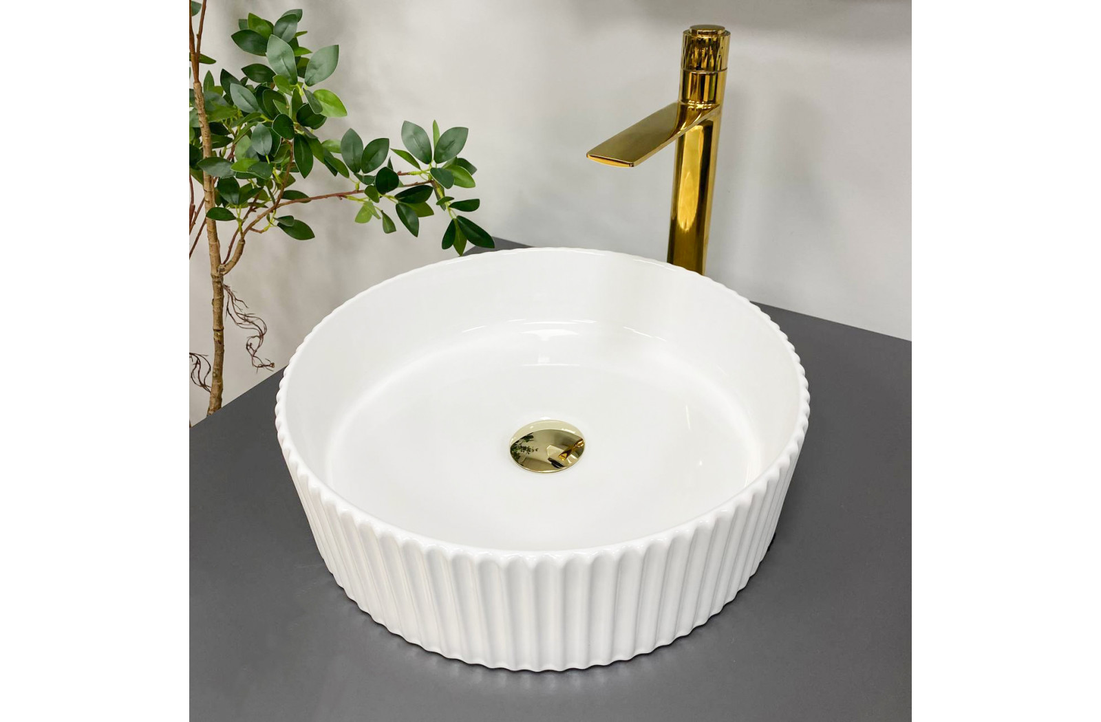 Накладные раковины серии VBI BRINDISI пользуются высоким спросом. Раковина круглой формы, гладкая внутри, а снаружи имеет рифленую текстуру, придающую современный вид. Предназначена для установки на столешницу и изготовлена из высококачественной керамики.